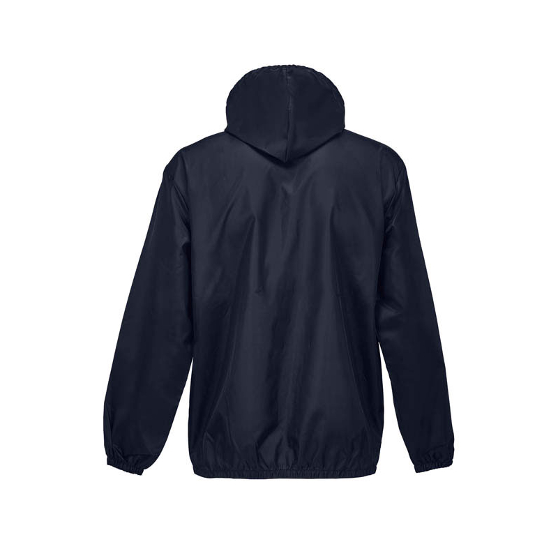 Il dispose d’une ouverture zippée, d’une capuche avec cordon de serrage, de poignets et d’un bas élastiqués ainsi que de deux poches avec fermeture auto-agrippante. Pliable dans sa propre poche, il se transporte facilement et s’intègre dans un sac ou un kit événementiel.