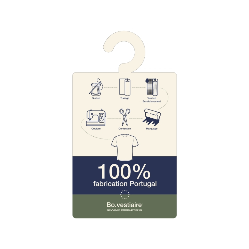 Sa fabrication européenne garantit une production maîtrisée et une traçabilité claire. Ce choix renforce la cohérence d’une communication responsable à travers un textile durable.